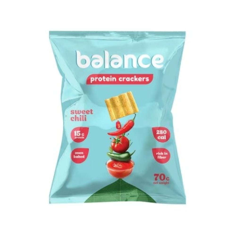 مقرمشات بروتين بالانس Balance Protein Crackers هو منتج سناك خفيف (مقرمشات) غني بالبروتين، ويأتي بنكهات مختلفة مثل "ساور كريم والبصل" (Sour Cream & Onion) و "فلفل حلو" (Sweet Chili) و "ليمون حلو" (Sweet Lemon). صُنع هذا المنتج خصيصًا ليقدم وجبة خفيفة ومغذية، فهو مخبوز وليس مقلي، مما يجعله خيارًا صحيًا. كل كيس يحتوي على 70 جرامًا.