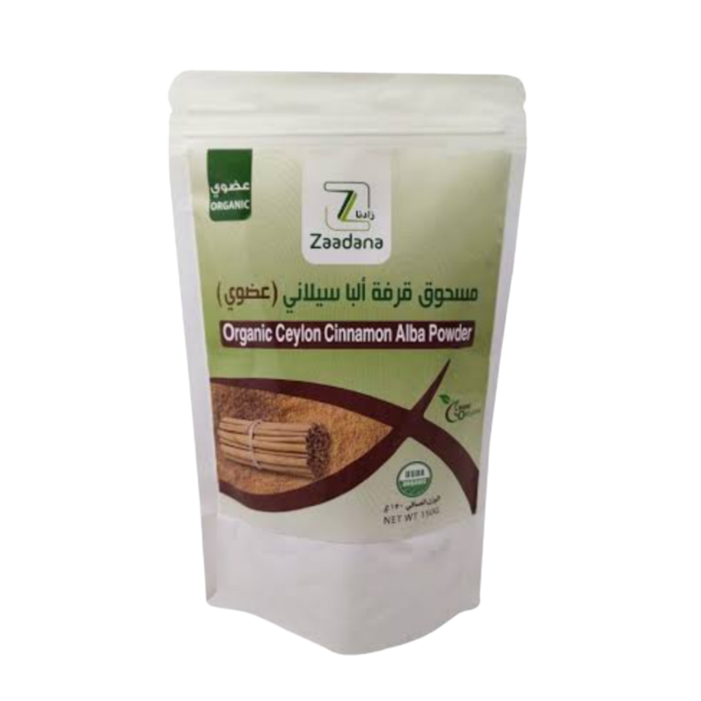 قرفة سيلاني عضوية مسحوق هي توابل طبيعية مشهورة بفوائدها الصحية العديدة ونكهتها المميزة، يتميز هذا المنتج من زادنا بنقائه العالي وجودته، حيث يتم زراعته وعملية معالجته بطرق عضوية تضمن الحفاظ على كافة العناصر الغذائية فيه.