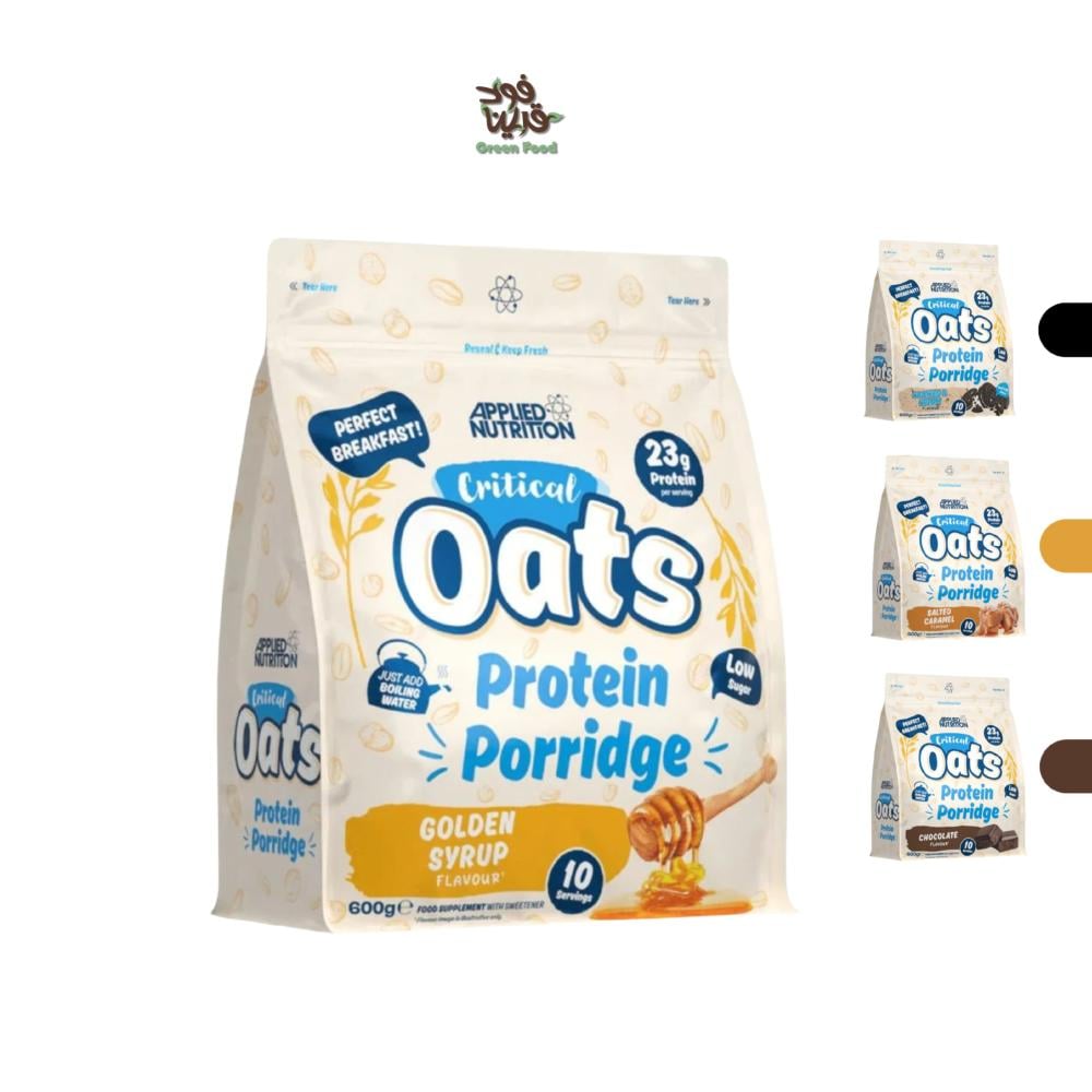 Applied Nutrition Critical Oats Protein Porridge هو عبارة عن وجبة شوفان مدعمة بالبروتين مصممة لتكون وجبة إفطار أو وجبة خفيفة مغذية. تحتوي على مزيج من الشوفان العضوي الكامل و بروتين مصل اللبن عالي الجودة، بالإضافة إلى الكربوهيدرات المعقدة و الألياف و الدهون الصحية.
