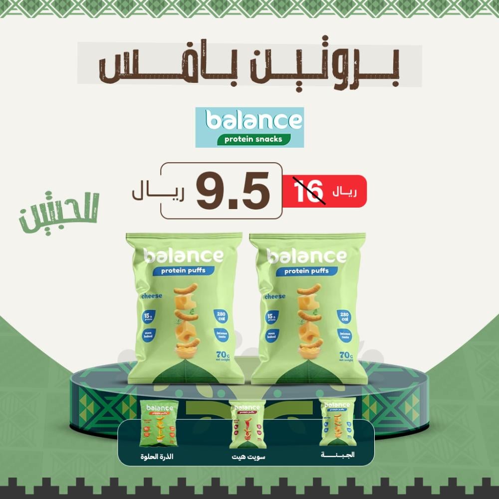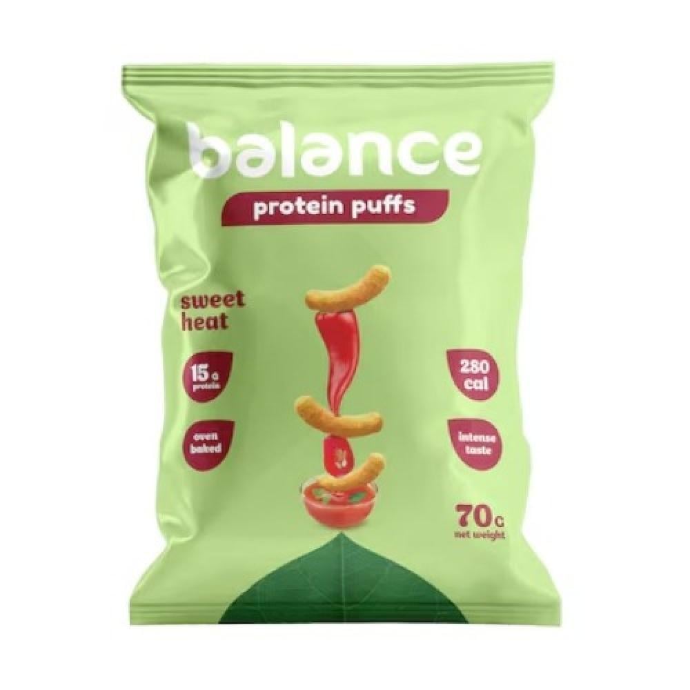 بروتين بافس بالانس Balance Protein Puffs هو سناك خفيف (بافس) غني بالبروتين، ويأتي بنكهات مختلفة مثل "الذرة الحلوة" (Sweet Corn) و"الجبنة الحلوة" (Sweet Cheese) و"السويت هيت" (Sweet Heat). كل كيس يحتوي على 70 جرامًا ويُعد خيارًا صحيًا لأنه مخبوز في الفرن وليس مقليًا.