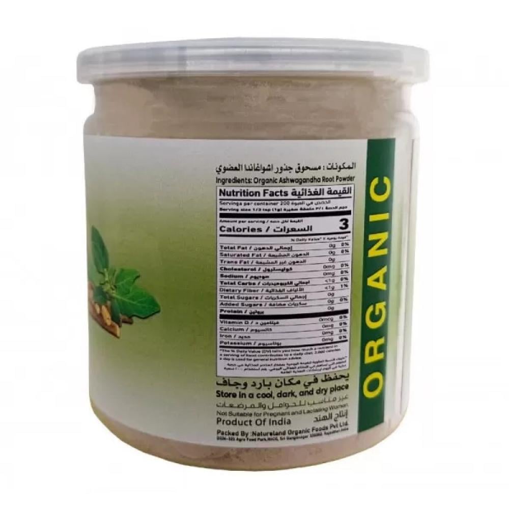 - مسحوق جذور اشواغاندا العضوي 100%: يتميز هذا المنتج بأنه عضوي، مما يعني أنه خالٍ من المبيدات الحشرية والأسمدة الكيميائية.