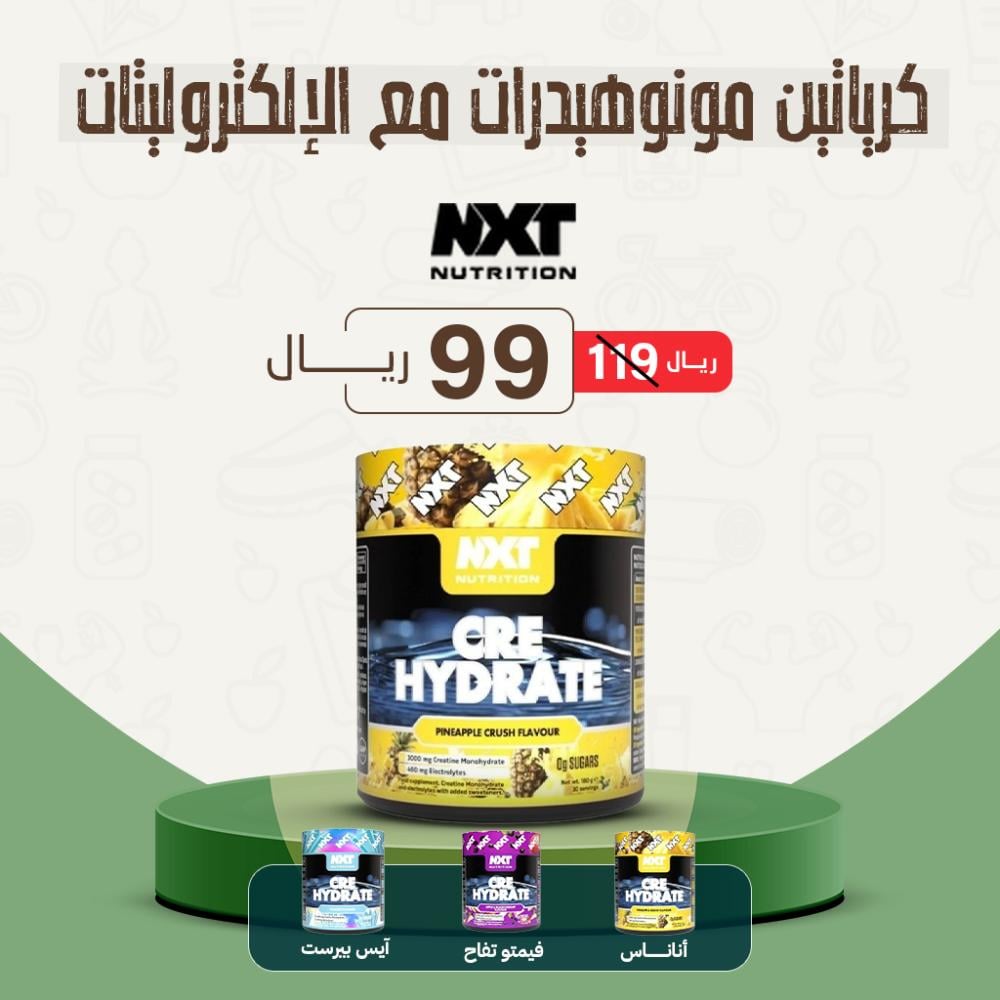كرياتين مونوهيدرات مع الإلكتروليتات من نكست نيوترشن هو مكمل غذائي رياضي متطور يجمع بين الكرياتين أحادي الهيدرات و5 أنواع من الإلكتروليتات الأساسية. تم تصميم هذا المزيج الفريد لتعزيز الأداء الرياضي من خلال زيادة القوة والتحمل، وتحسين الترطيب، والمساعدة في تجنب التقلصات العضلية.