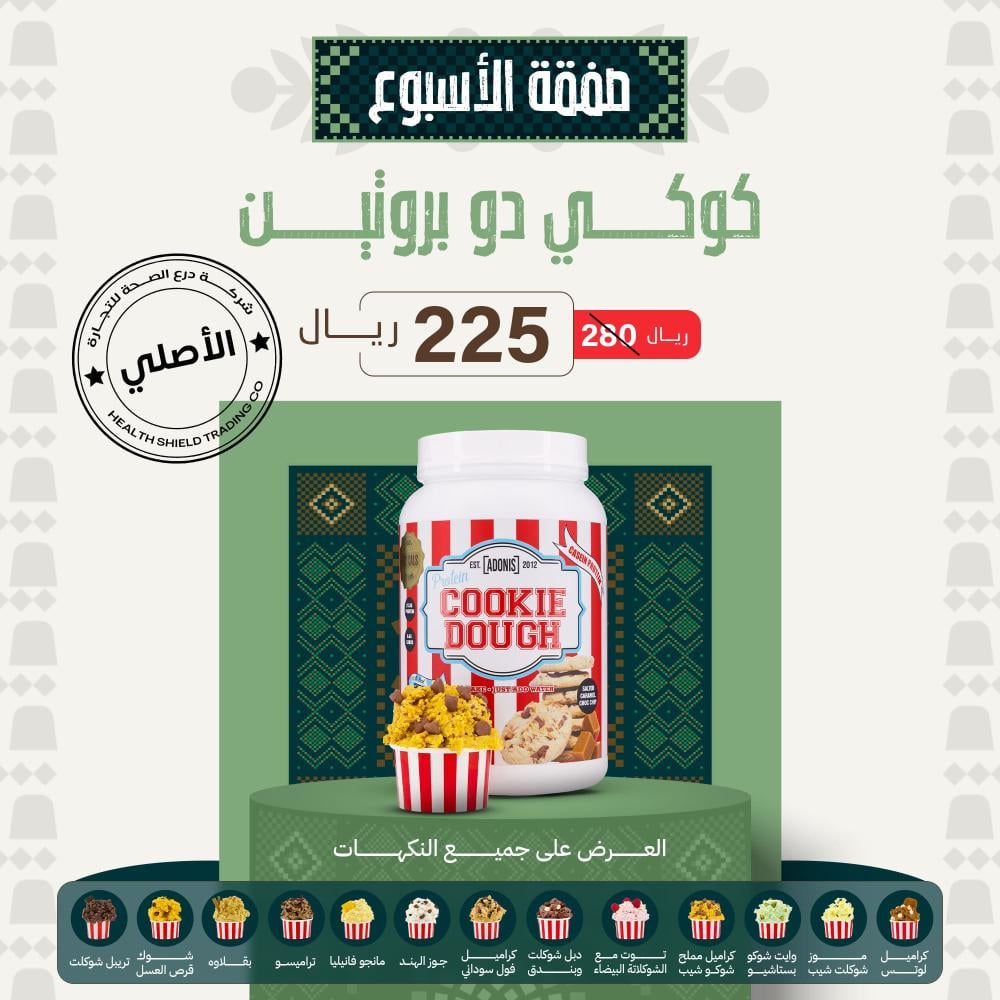 كوكي دو بروتين من أدونيس ADONIS COOKIE DOUGH هو وجبة خفيفة غنية بالبروتين ومنخفضة الكربوهيدرات، مصممة للرياضيين الذين يحبون الحلويات لكن بطريقة صحية. تحتوي كل حصة (40 جرام) على حوالي 21 جرامًا من البروتين (الكازين)، مما يساعد في بناء العضلات ويعزز من عملية الاستشفاء بعد التمرين، بالإضافة إلى كمية قليلة من الدهون والكربوهيدرات.