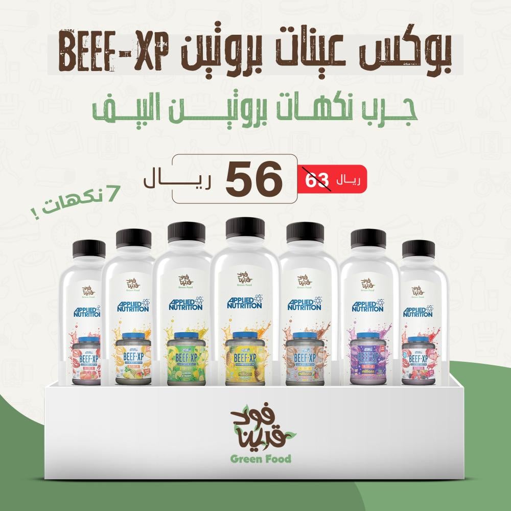 استمتع بتجربة فريدة مع بوكس عينات بروتين BEEF-XP من قرين فود! هذا البوكس المميز يقدم لك فرصة لتجربة 8 نكهات متنوعة من بروتين لحوم البقر عالية الجودة، لتجد النكهة التي تناسب ذوقك تماماً.